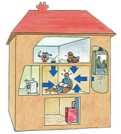 Les bruits aériens, comme leur nom l'indique, sont des bruits qui se propagent par l'air et font vibrer les parois d'une pièce, le son traverse donc la paroi et fait vibrer l'air dans les pièces voisines.