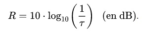 On parle d'isolement acoustique élevé lorsque R, exprimé en dB, est une grande valeur.