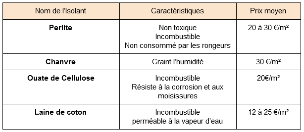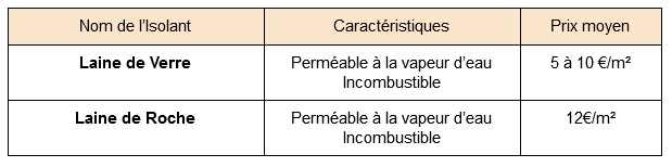 d'isolants dite "laines minérales", qui sont des isolants avec un prix